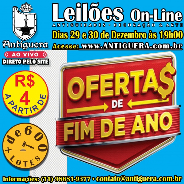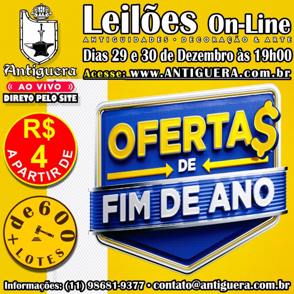 Leilão 58376 LEILÃO ANTIGUIDADES, COLECIONISMO, DESIGN, DECORAÇÃO & ARTE em 2 DIAS: 29 e 30 de Dezembro as 19h00
